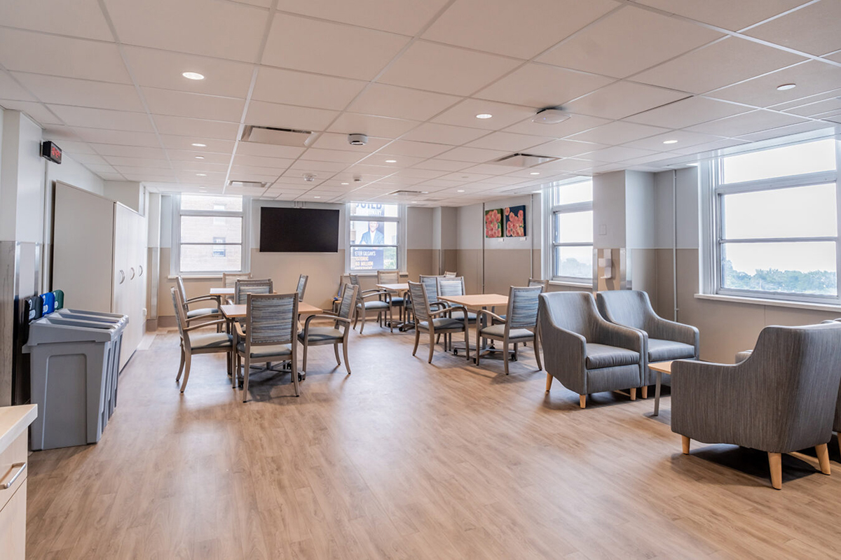 This complete renovation of 10,000 sq. ft. of the Gilgan Family Wing transformed the entire 4th floor, and brings 21 new patient beds to support those transitioning from hospital to the community and home. RCC's are a collaborative and innovative Alternate Levels of Care (ALC) model, designed to help patients who no longer need acute care services, but often find themselves waiting for an alternate care facility, such as convalescent and long-term care.
