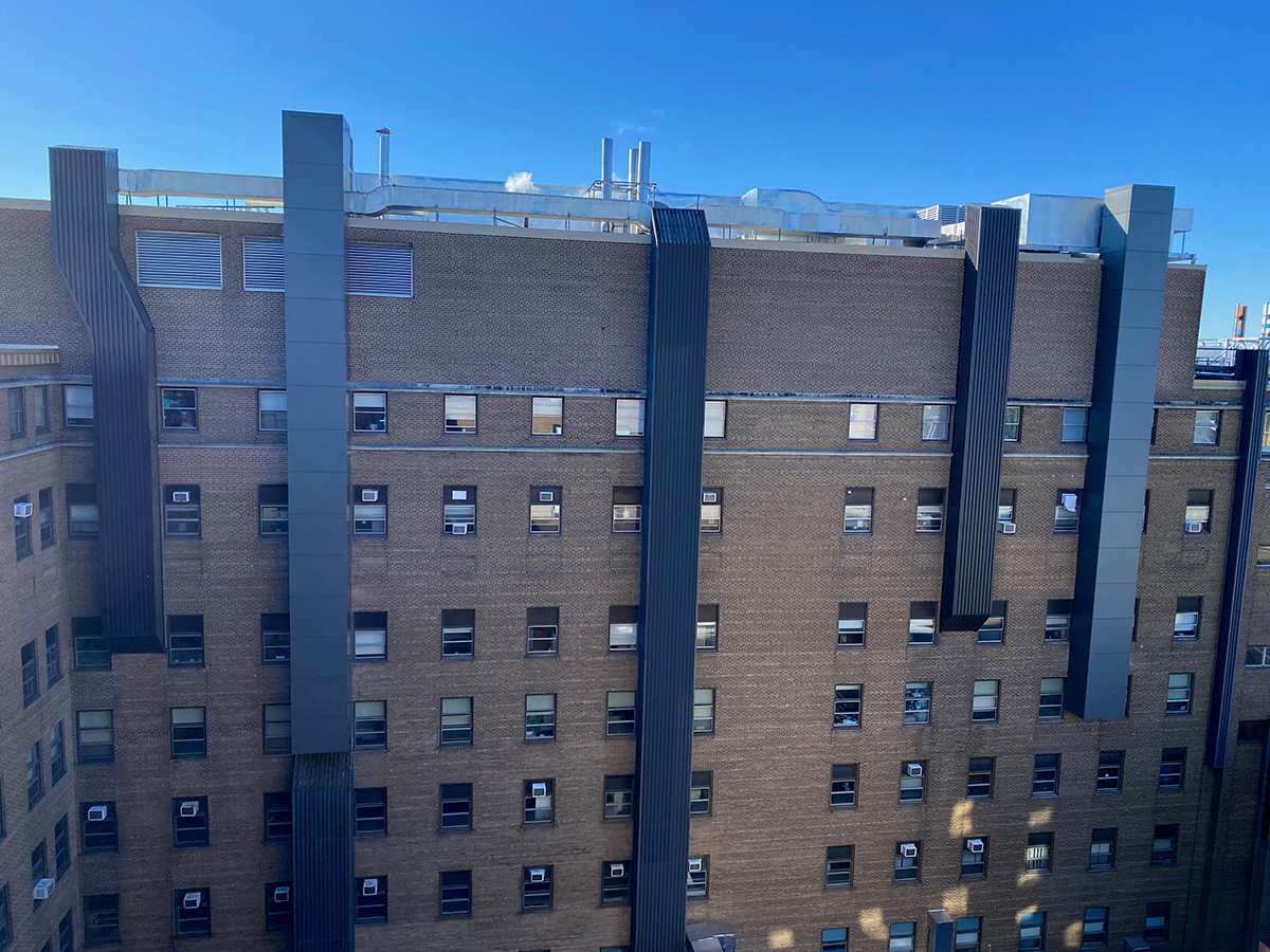 To facilitate the new HVAC duct mains between the Level 8 Penthouse and Level 4, we constructed three new exterior shafts, affixed onto the exterior of the 60+ year old building. Scope of work included the associated structural and architectural work.