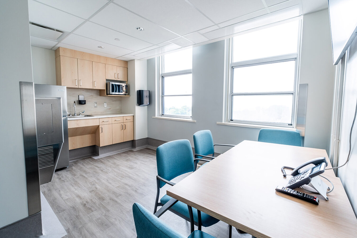 This complete renovation of 10,000 sq. ft. of the Gilgan Family Wing transformed the entire 4th floor, and brings 21 new patient beds to support those transitioning from hospital to the community and home. RCC's are a collaborative and innovative Alternate Levels of Care (ALC) model, designed to help patients who no longer need acute care services, but often find themselves waiting for an alternate care facility, such as convalescent and long-term care.